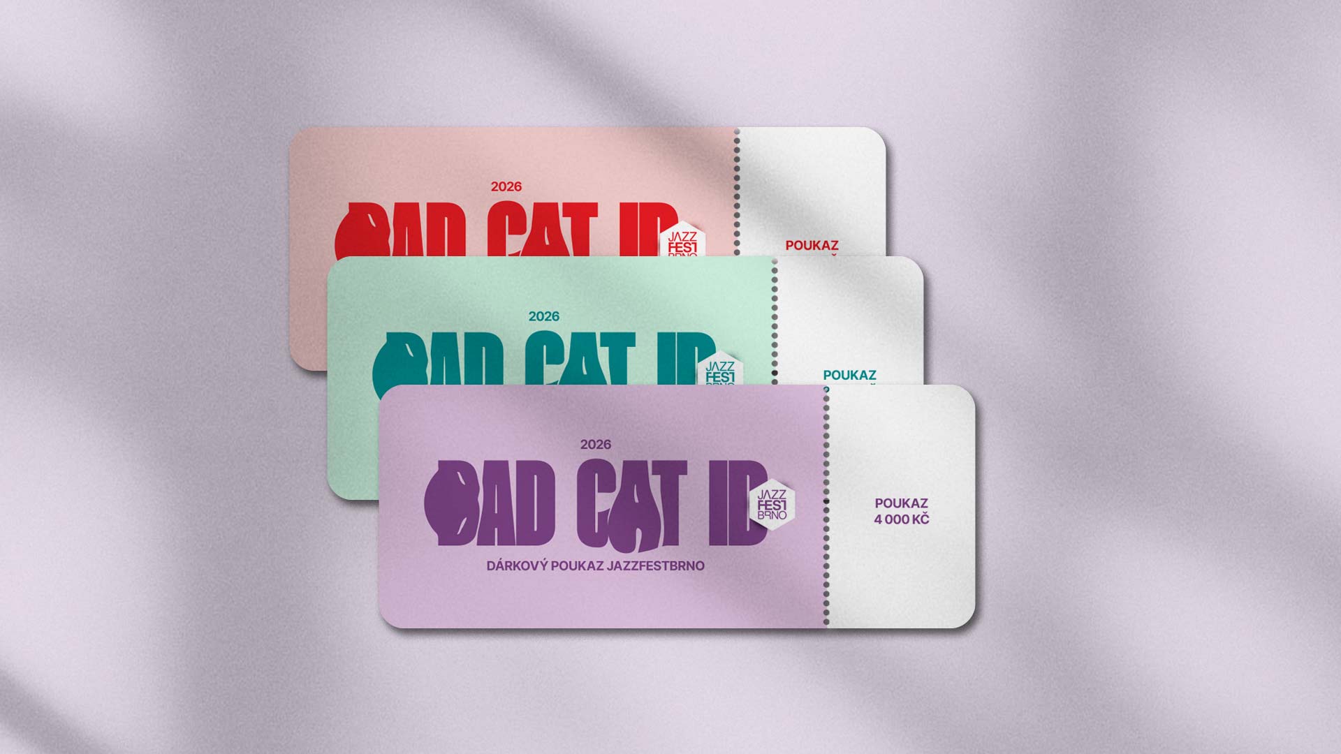 Chcete někoho potěšit vstupenkou na koncert, ale nevíte, jakou svým blízkým koupit? Proto máme Bad Cat ID – průkazku jazzového nadšence. Stačí si vybrat výši poukazu a ke každému od nás dostanete dárek navrch: poukaz na 1 500 Kč (s taškou), na 2 000 Kč (s tričkem), nebo na 4 000 Kč (s členstvím ve fanclubu).